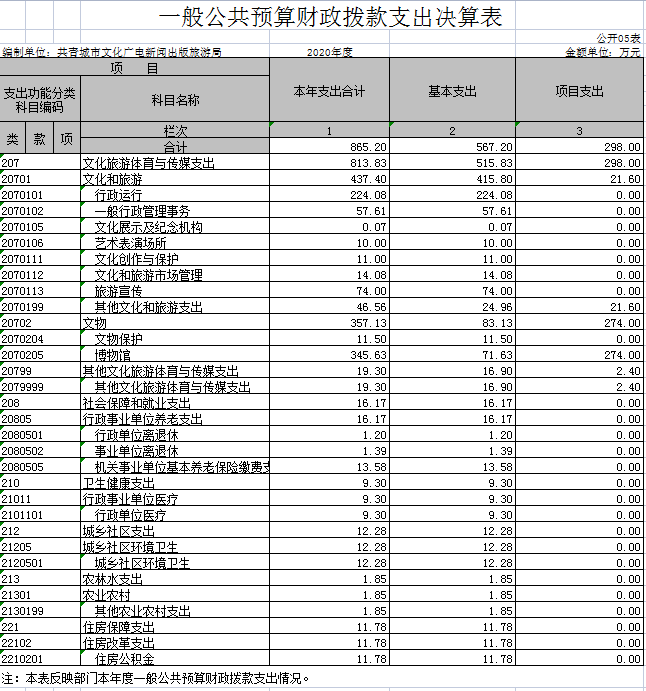 (一)文化旅游体育与传媒支出年初预算数为1207.07万元,决算数为837.63万元,