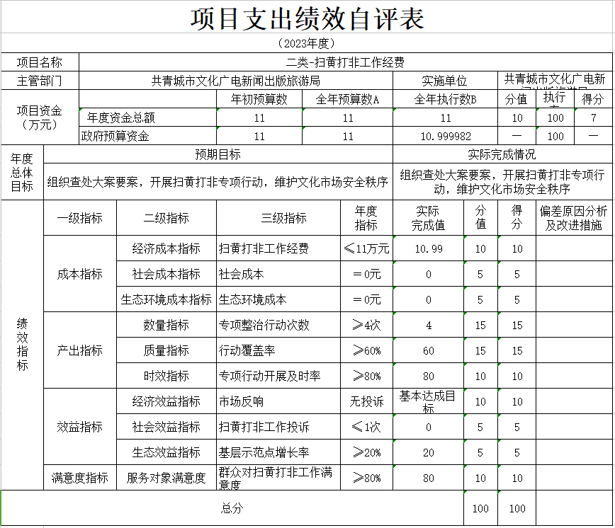 本部门“二类-扫黄打非工作经费项目”等40个二级项目支出绩效自评结果如下:
