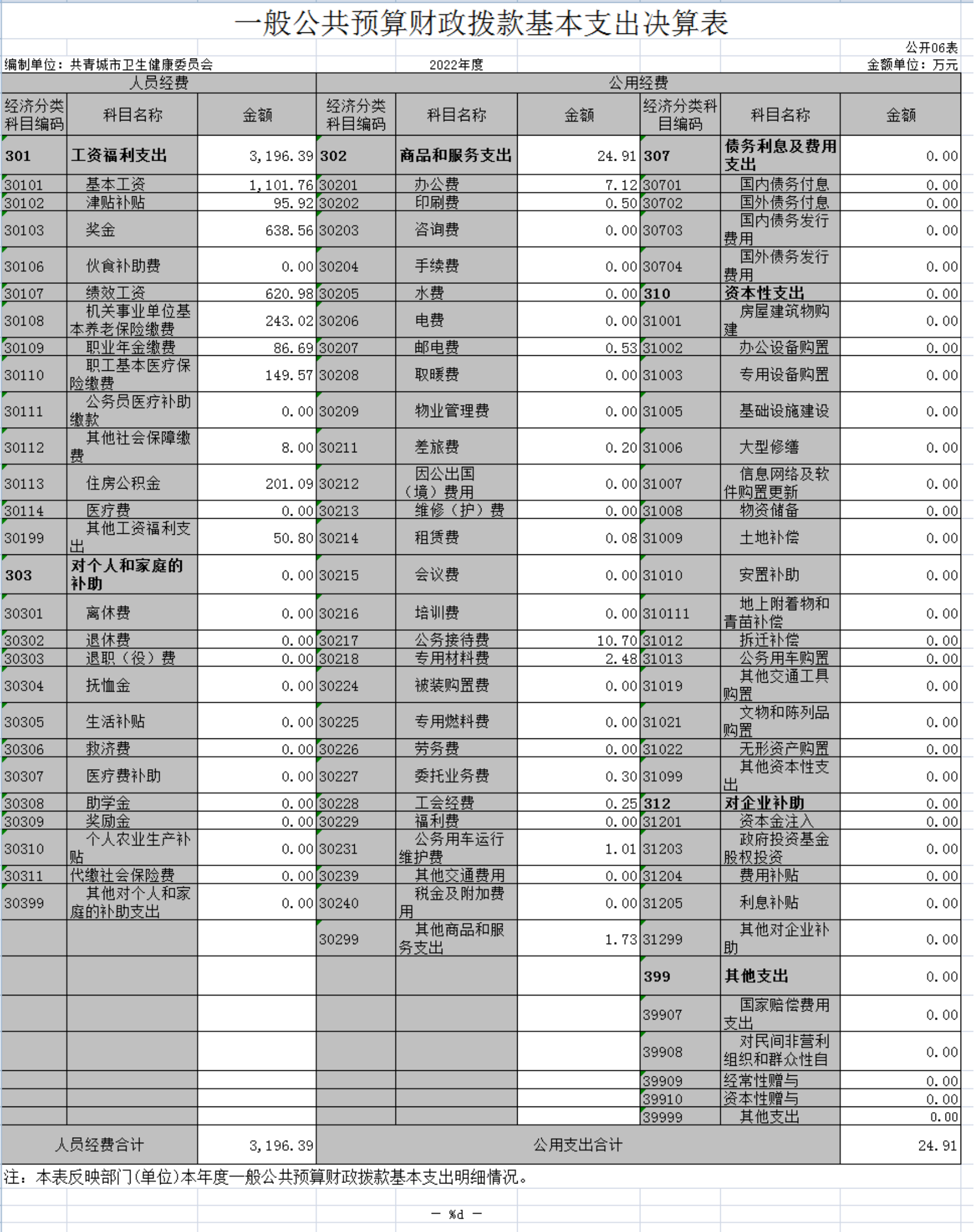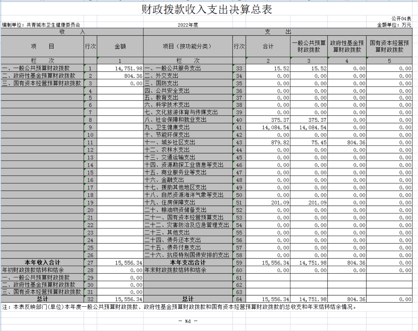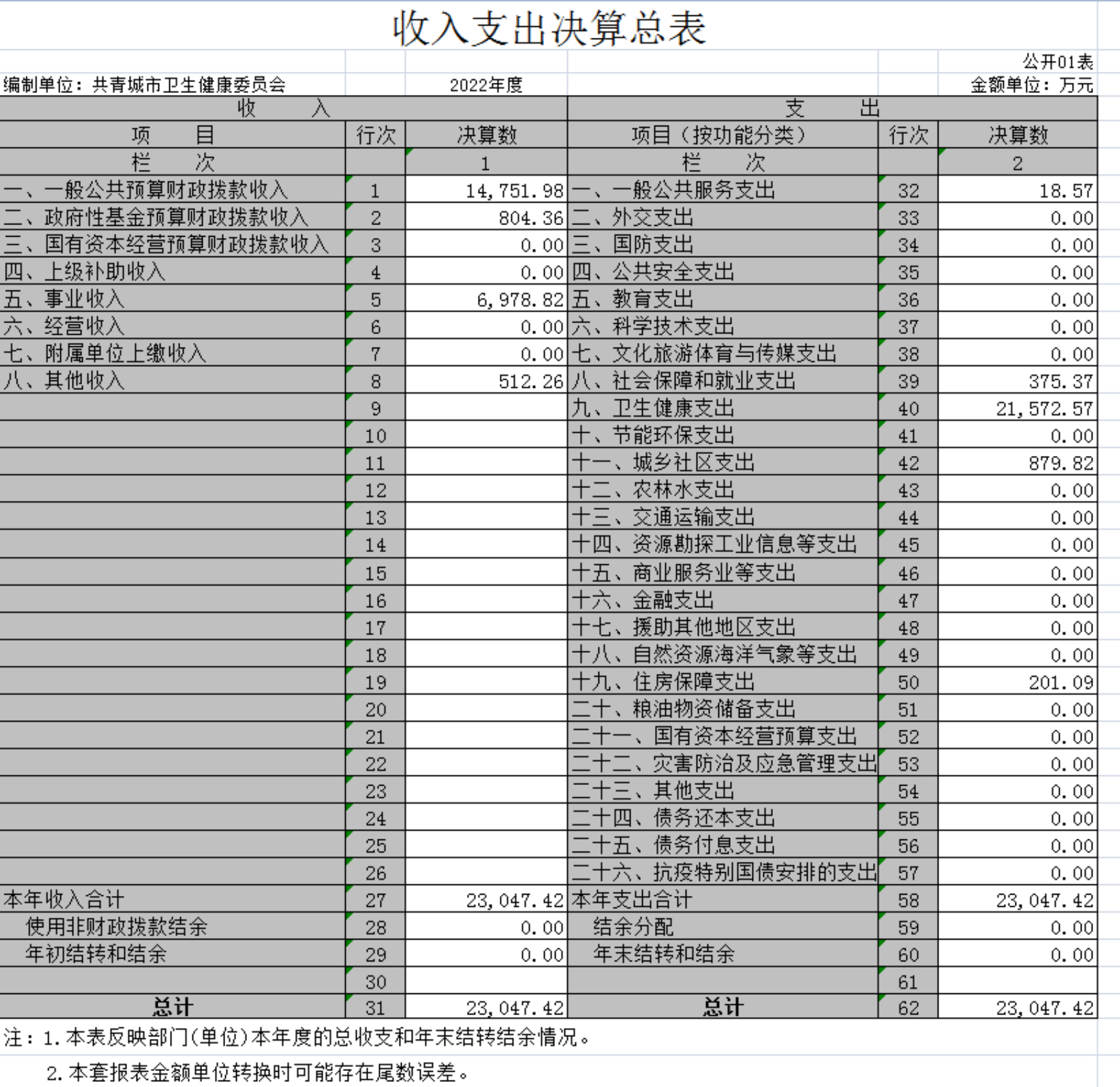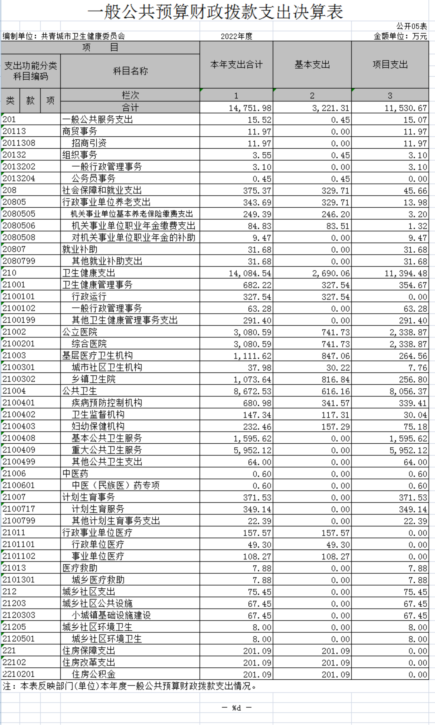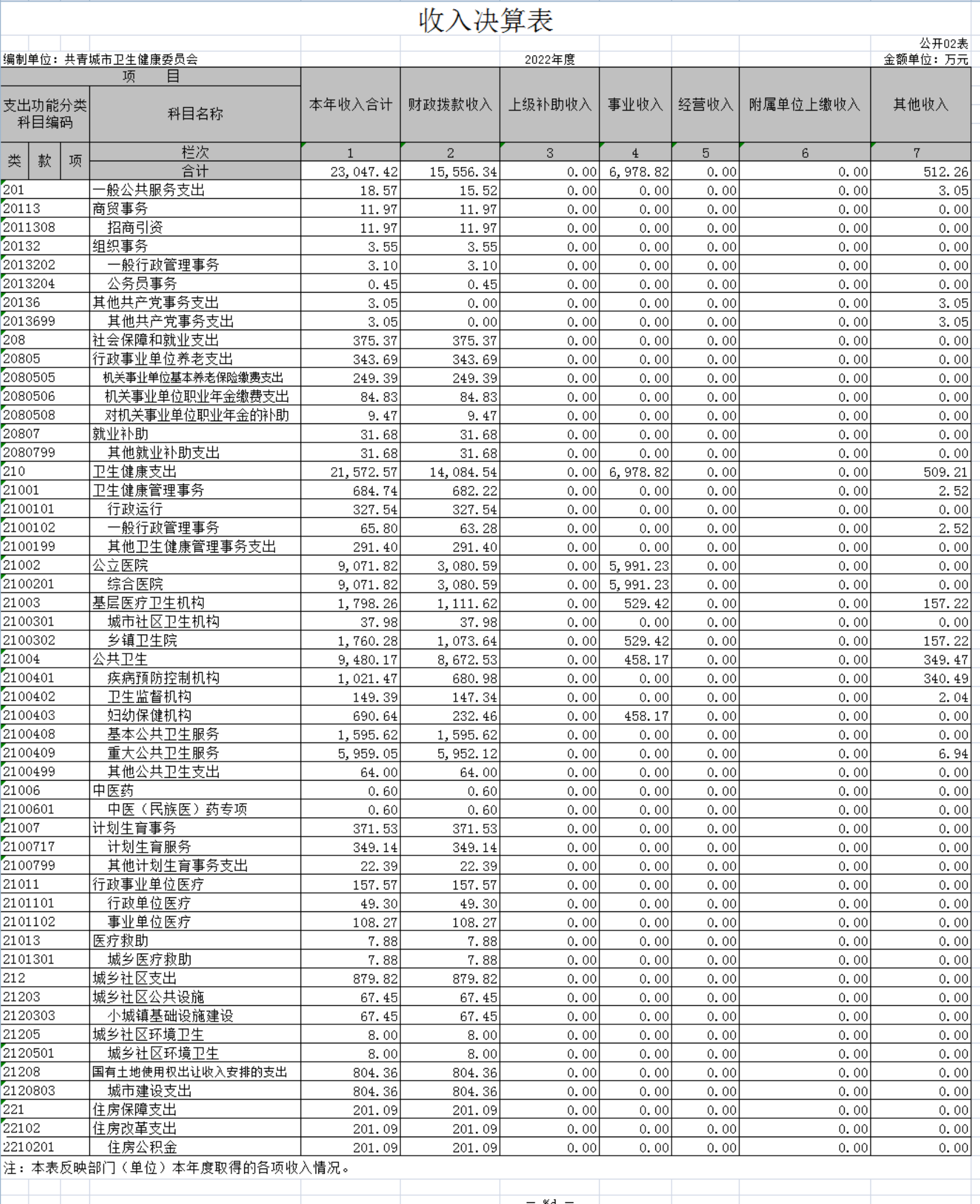 共青城市卫生健康委员会2022年度部门决算