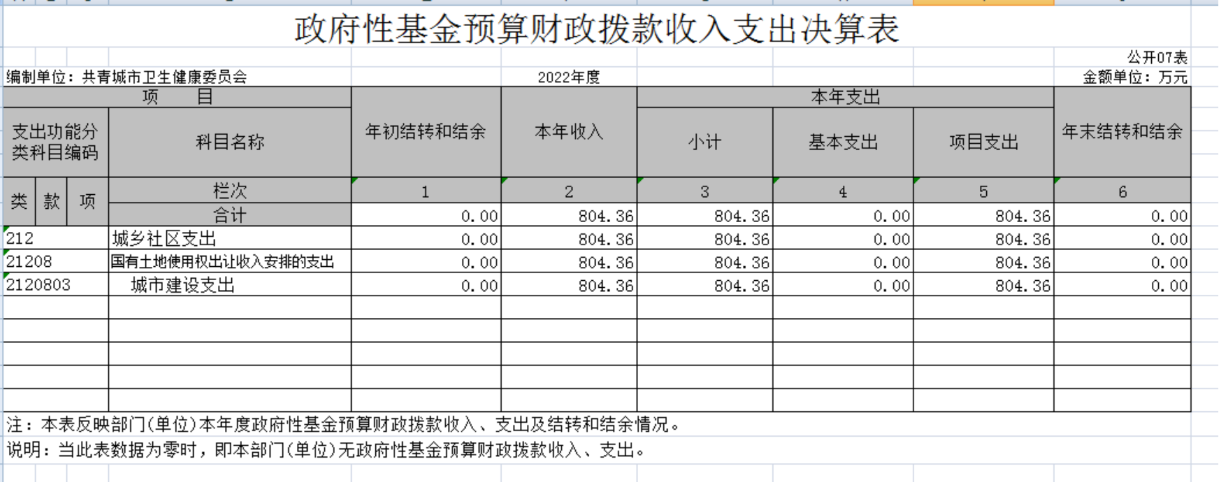 七、政府性基金预算财政拨款收入支出决算表
