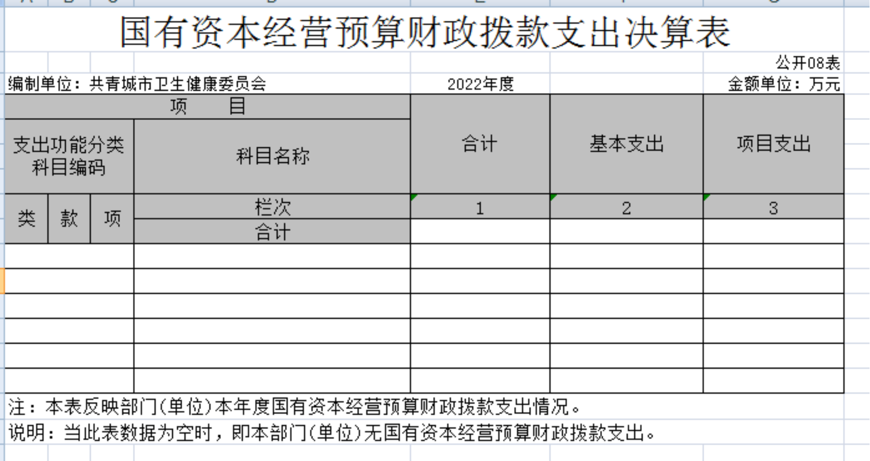 八、国有资本经营预算财政拨款支出决算表
