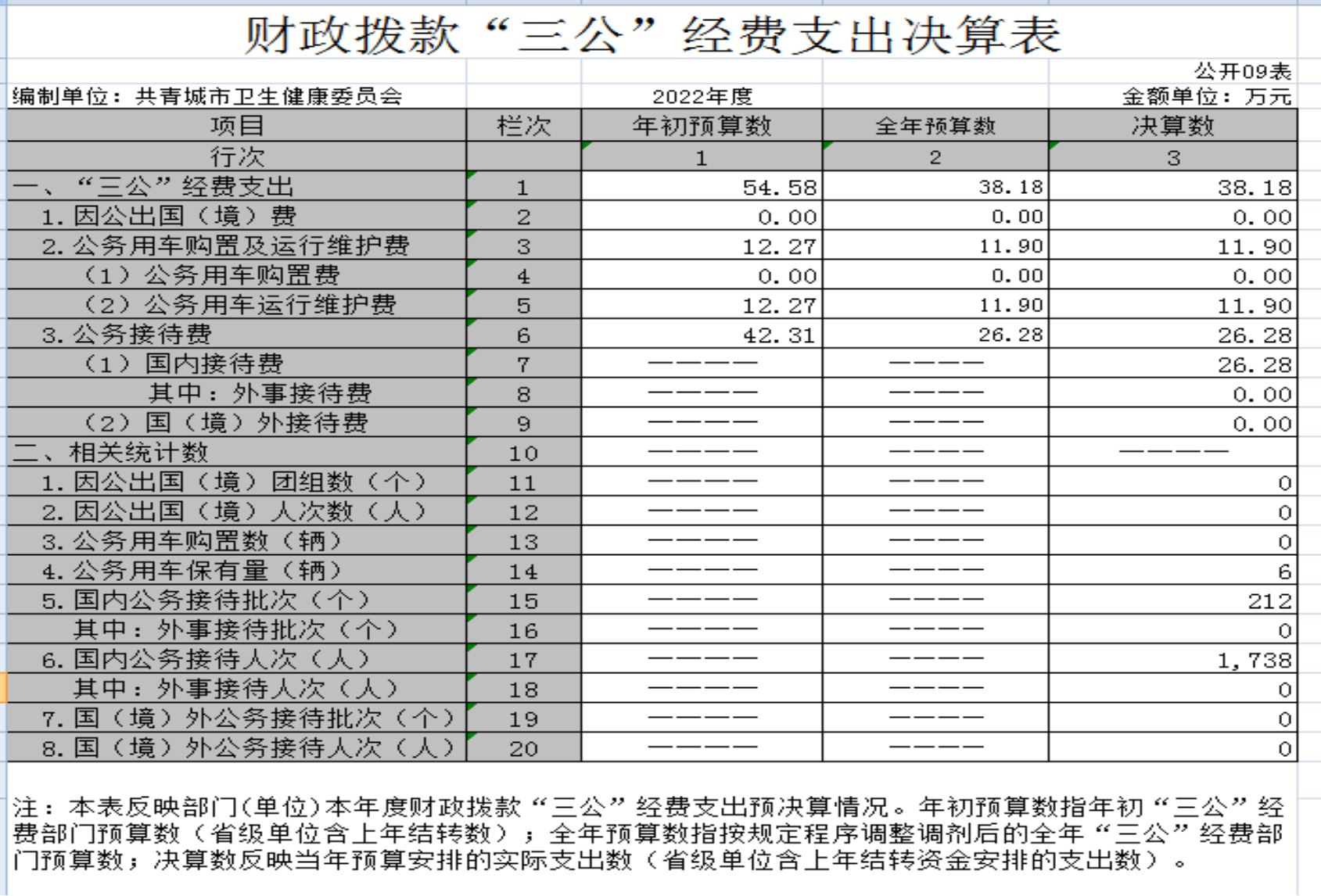(二)公务接待费支出全年预算数为42.31万元,决算数为26.28万元,完成全年预算的62.11%,决算数较2021年增加6.61万元,增长33.60%,主要原因是共青城市卫生健康委员会作为第十一招商组团牵头单位,本年度招商公务接待经费预算增加。决算数较全年预算数增加的主要原因是:招商公务接待经费预算增加,严格控制缩减公务接待开支。全年国内公务接待212批,累计接待1738人次,其中外事接待0批,累计接待0人次,主要为:招商单位、上级单位及周边县区单位来人接待住宿及餐饮费用,严格控制缩减公务接待开支。