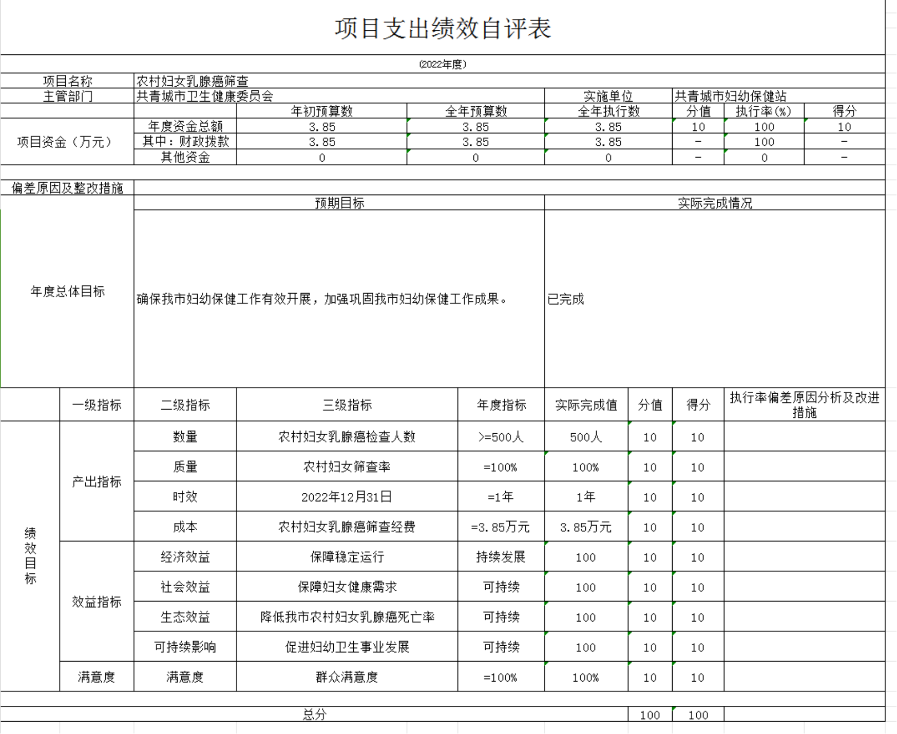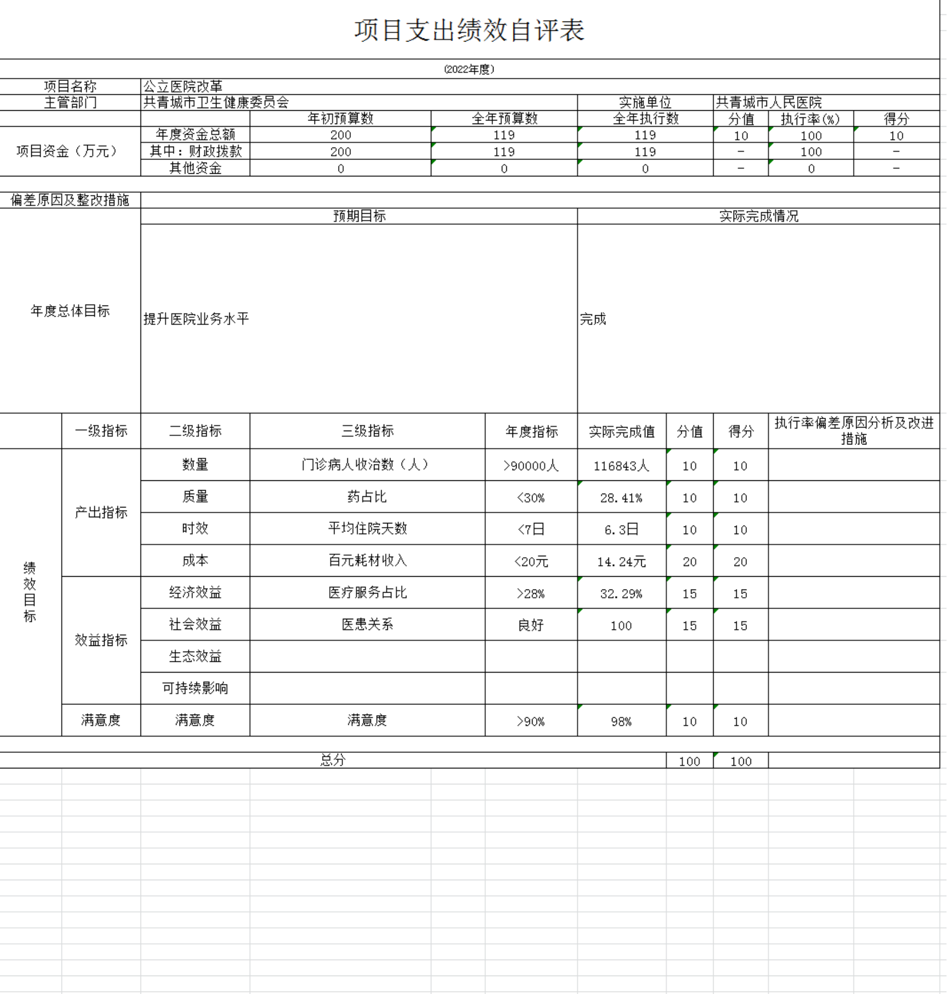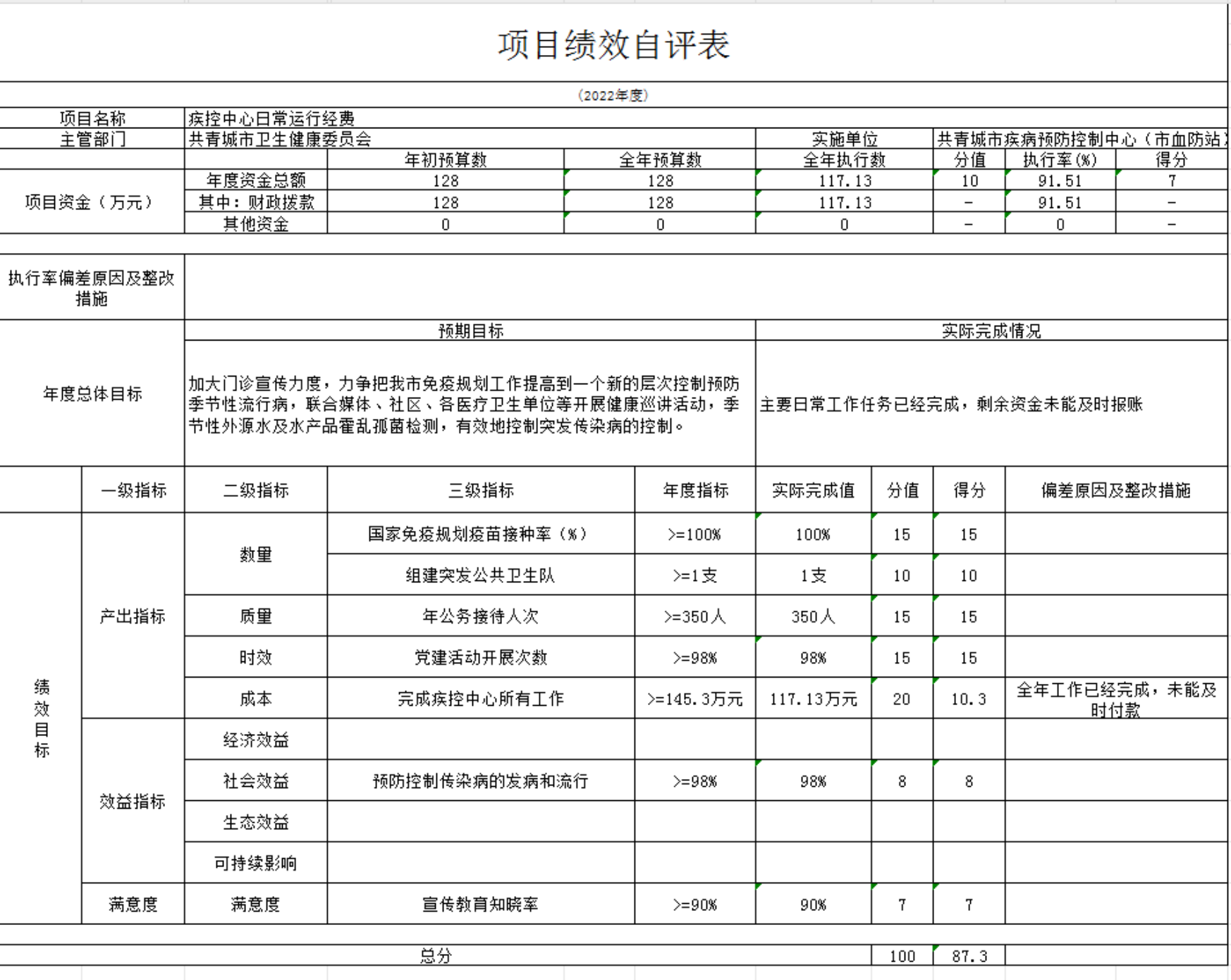 共青城市卫生健康委员会2022年绩效自评总报告: