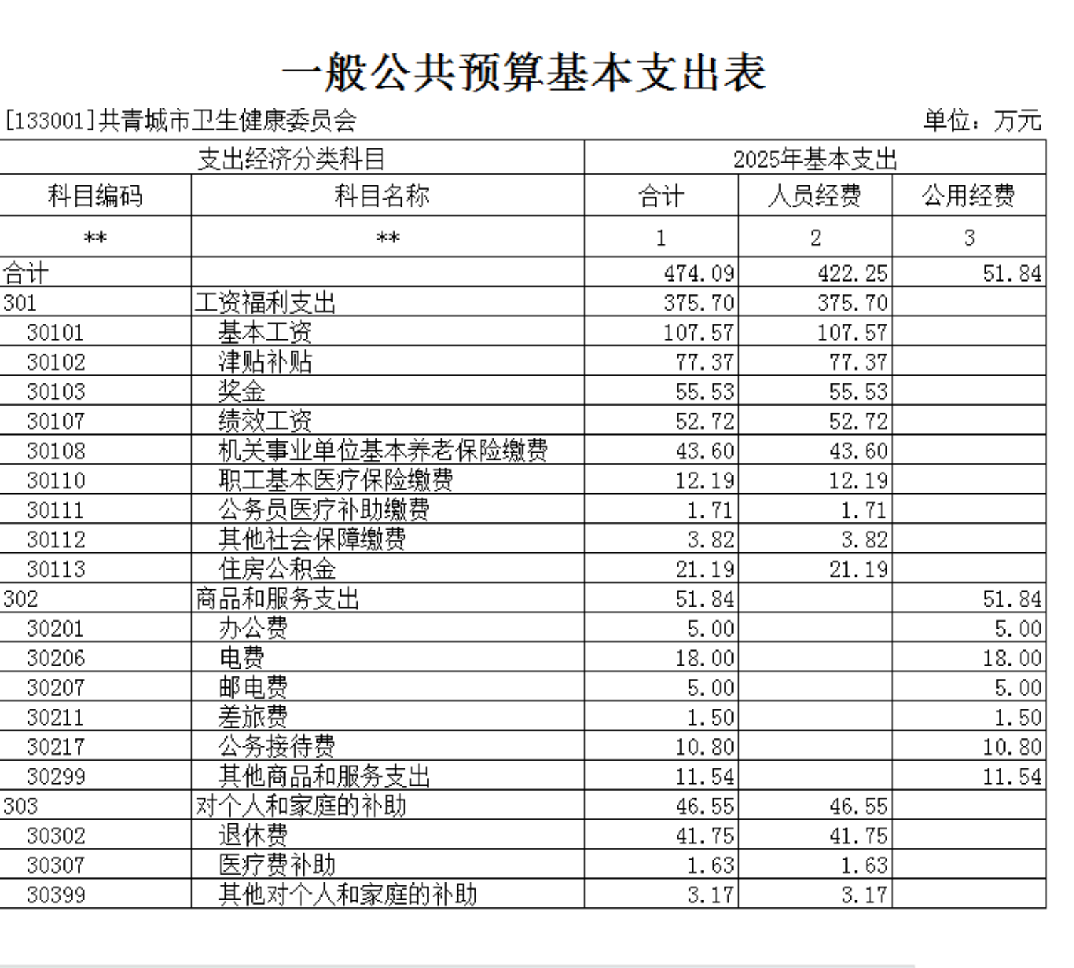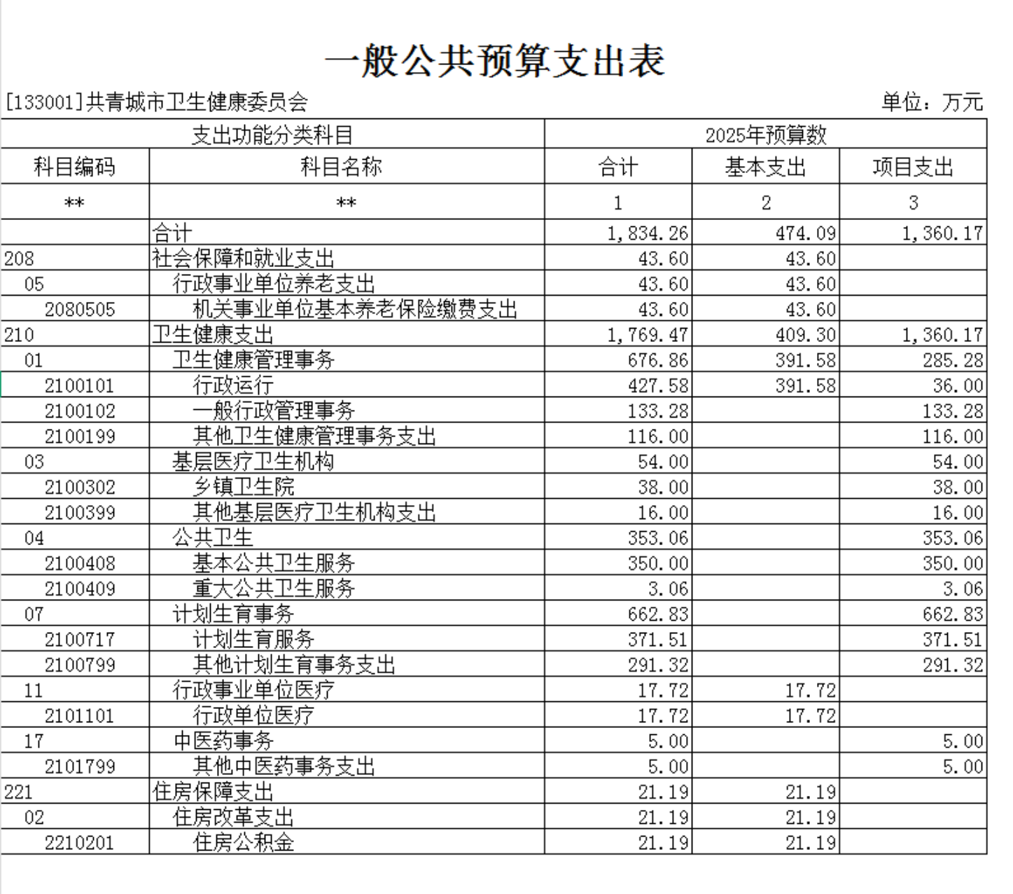 第三部分共青城市卫生健康委员会本级2025年部门预算表