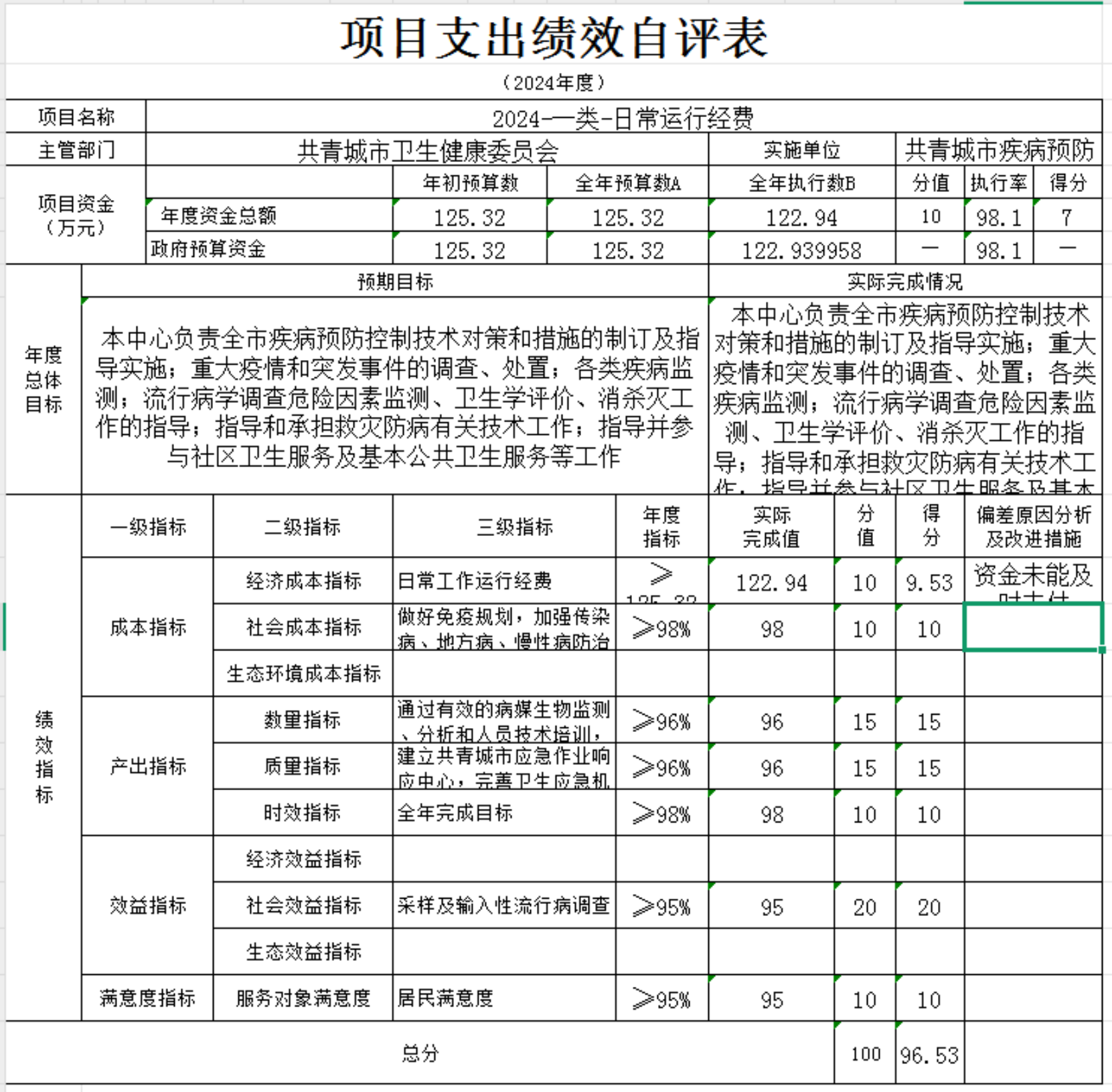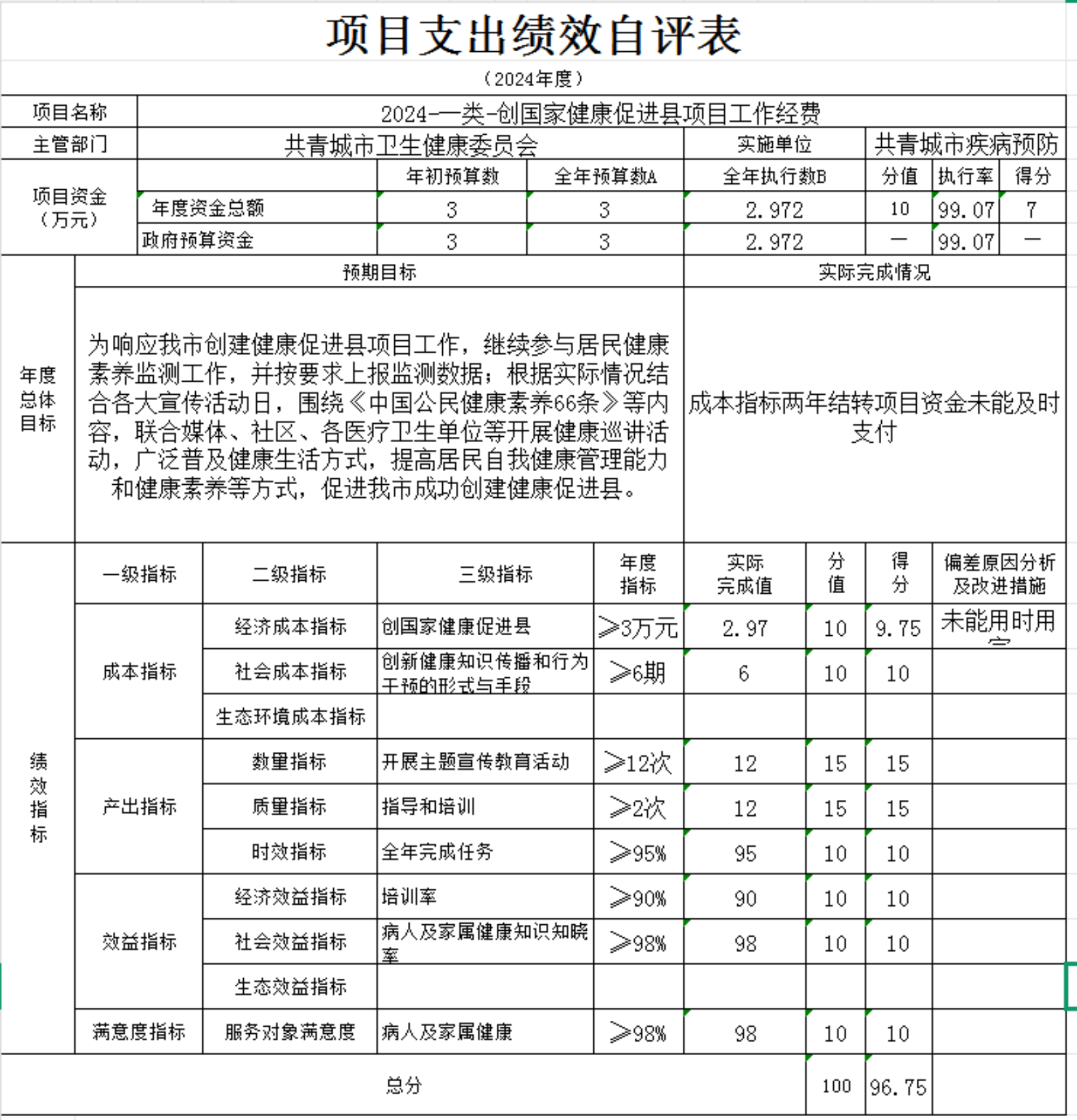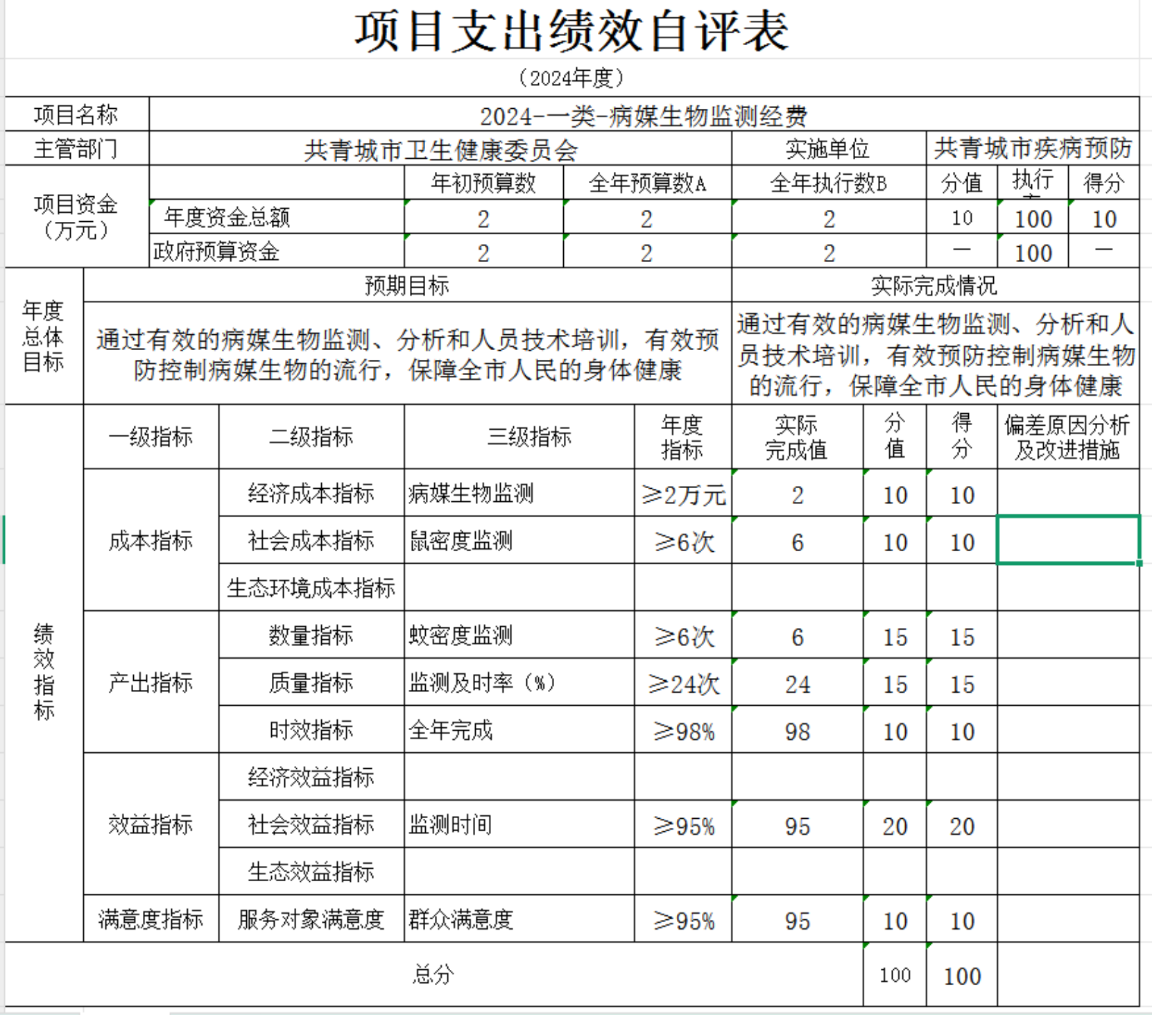 本单“位项目支出绩效自评表”如下: