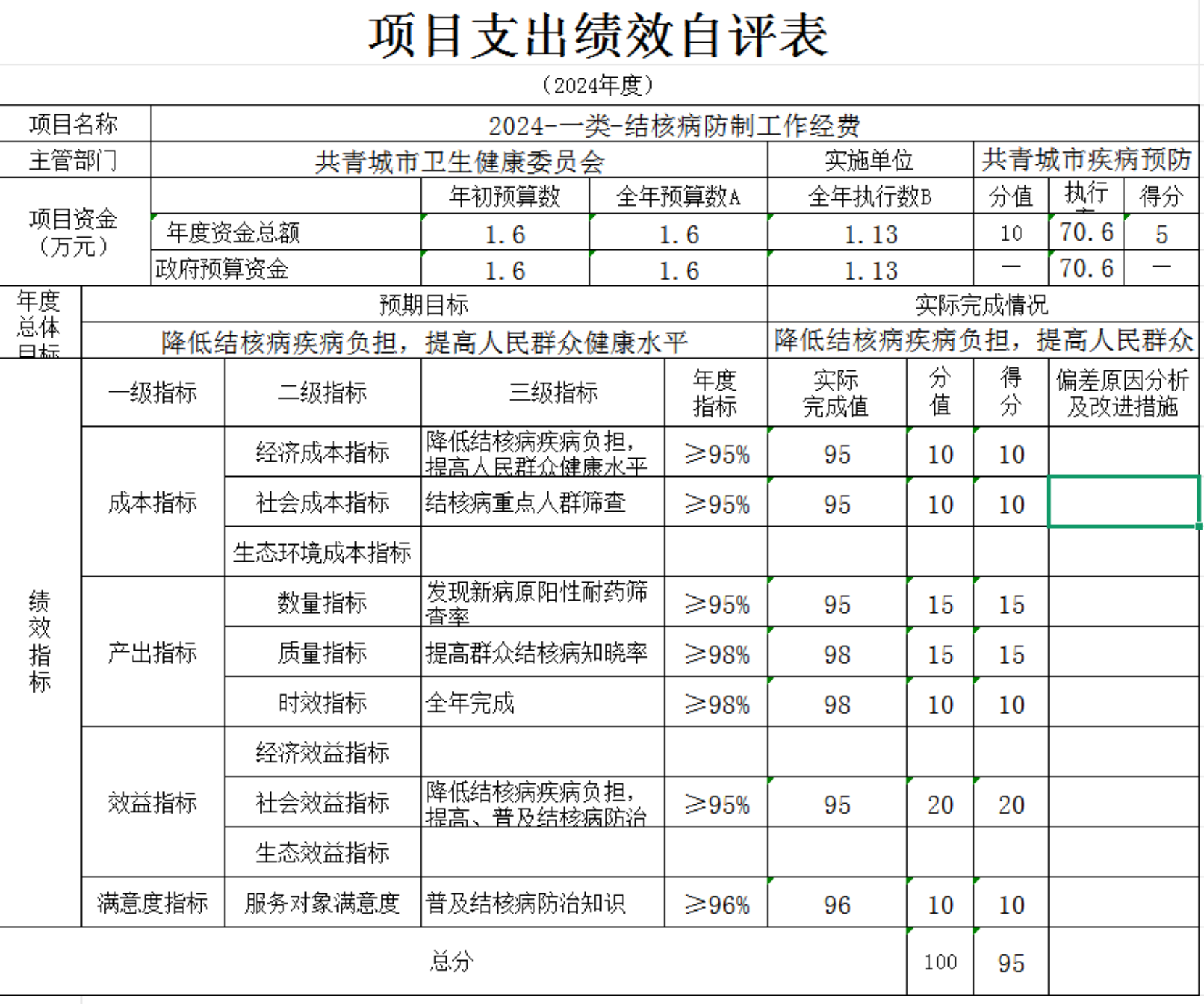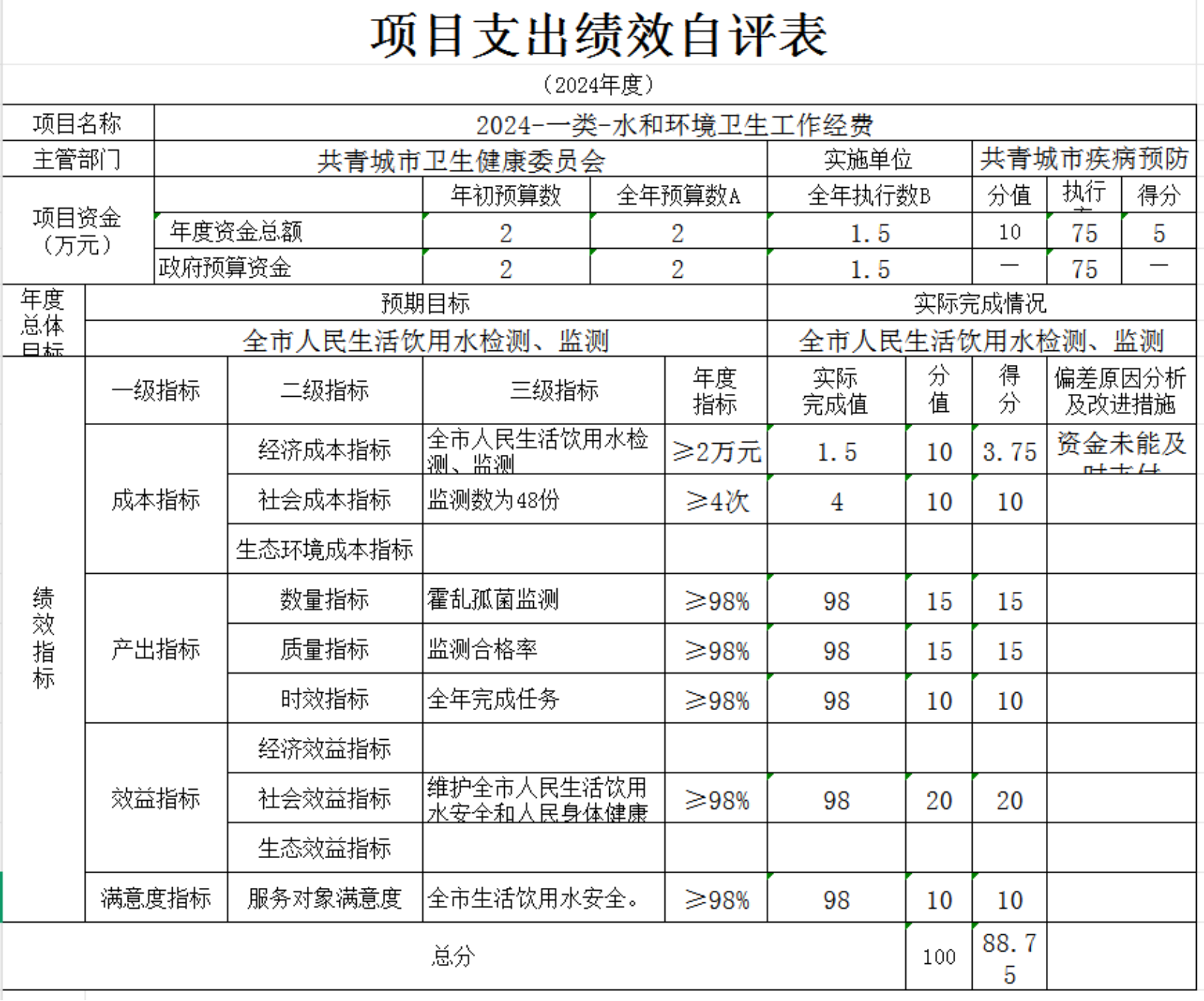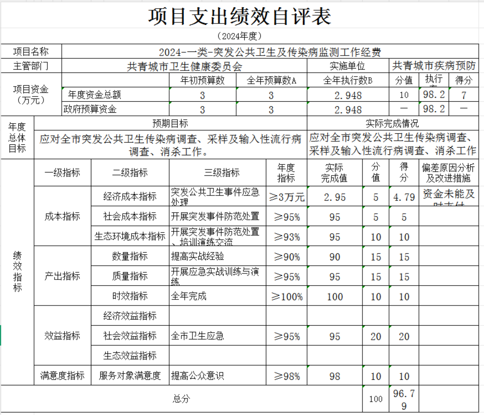 本单“位项目支出绩效自评表”如下: