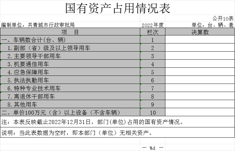 截止2022年12月31日,本部门国有资产占用情况见公开10表《国有资产占用情况表》。其中车辆中的其他用车主要是我单位没有公务用车。