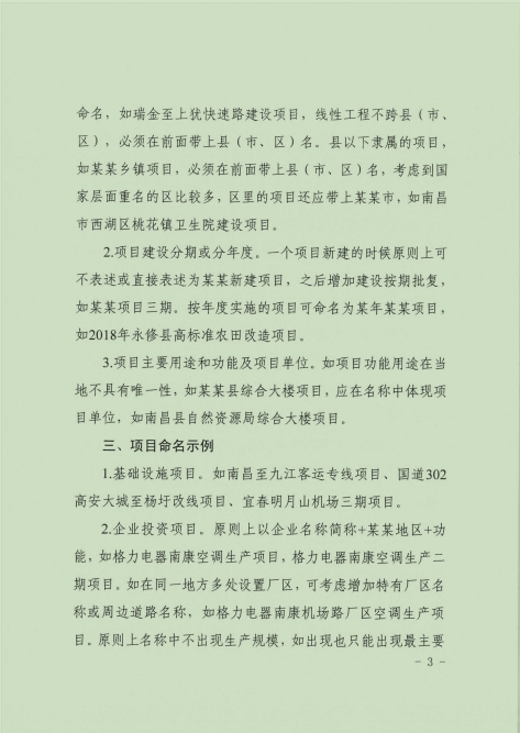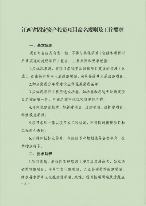 关于转发《江西省固定资产投资项目命名规则及工作要求》的通知