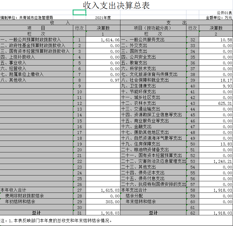 一、收入支出决算总表