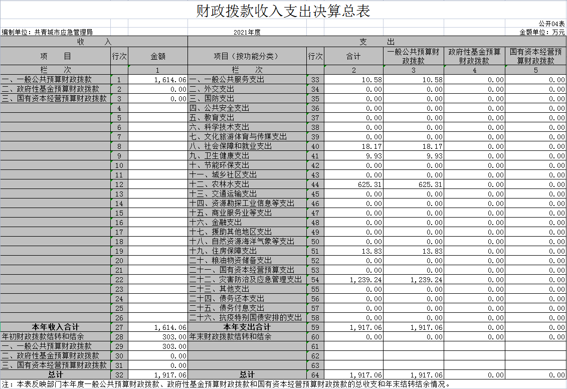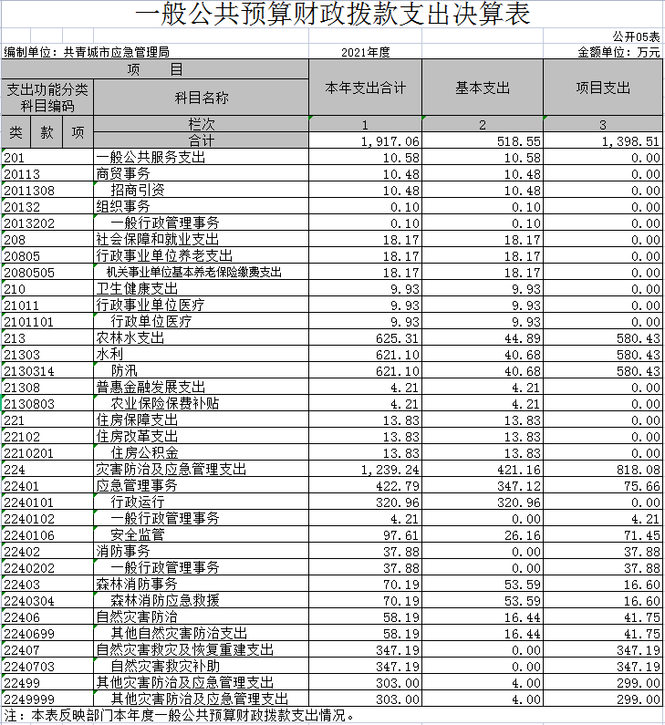 共青城市应急管理局2021年度部门决算