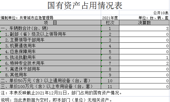 十、国有资产占用情况表