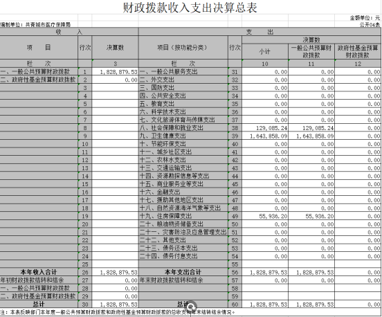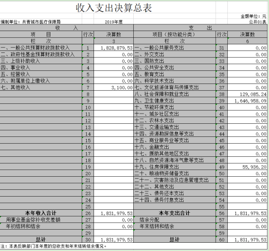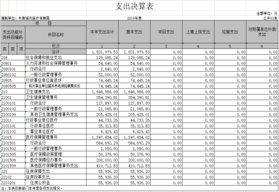 共青城市医疗保障局2019年度部门决算公开