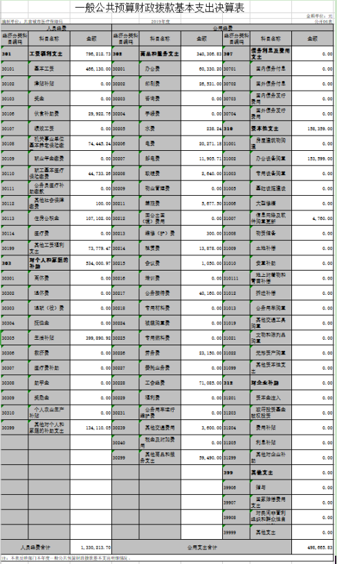 第二部分 2019年度部门决算表