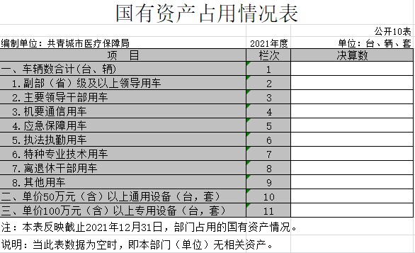 截至2021年12月31日,本部门(单位)国有资产占用情况见公开10表《国有资产占用情况表》。本部门无购置公务车辆。