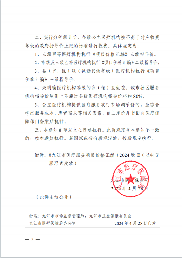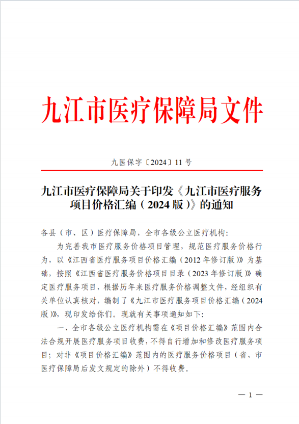 九医保字〔2024〕11号关于印发《九江市医疗服务项目价格汇编(2024版)》的通知