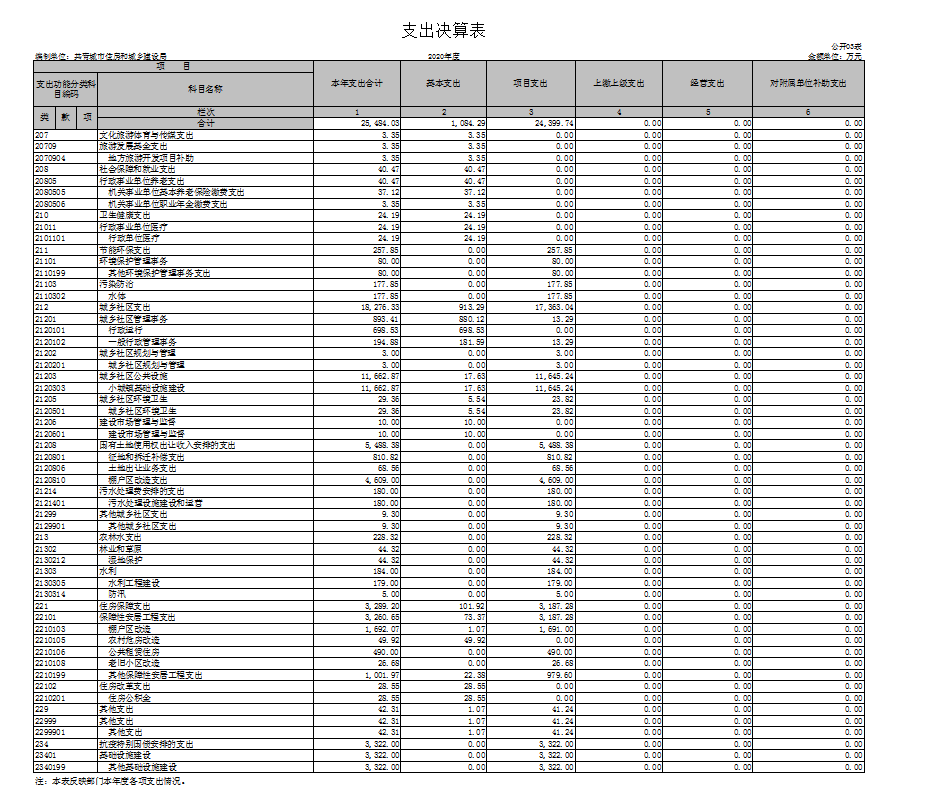 本年支出的具体构成为:基本支出 1084.29 万元,占4.25 %;项目支出 24399.74万元,占95.75%;经营支出0万元,占0%;其他支出(对附属单位补助支出、上缴上级支出) 0 万元,占0%。