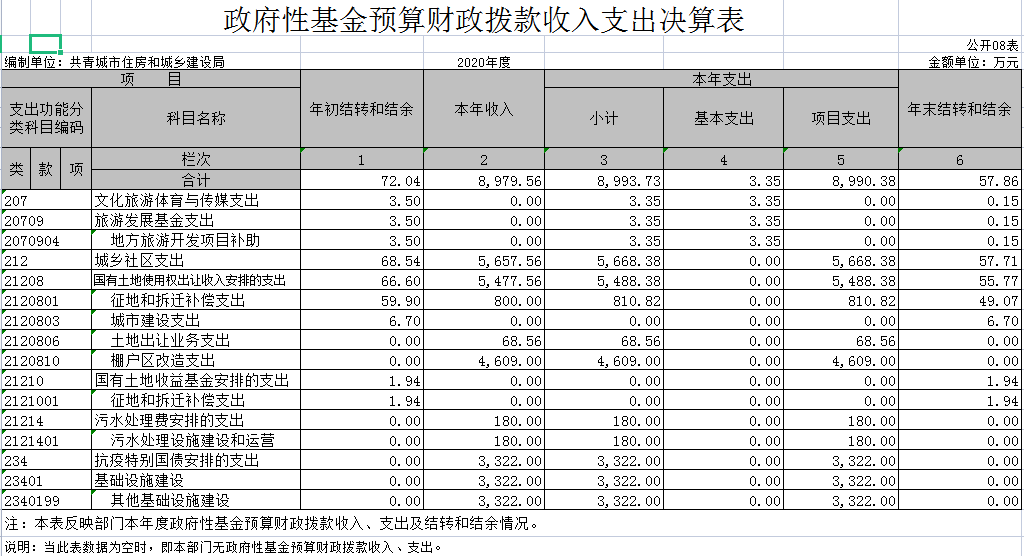 (五)上年结转和结余:填列2020年全部结转和结余的资金数,包括当年结转结余资金和历年滚存结转结余资金。
