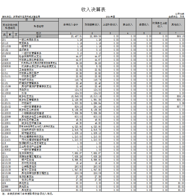 二、收入决算表
