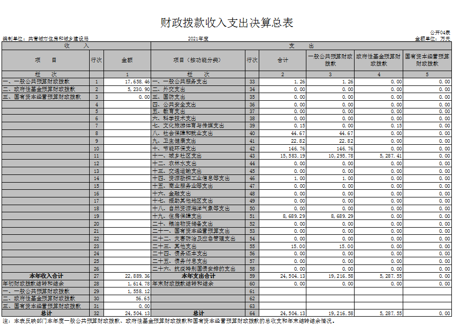 四、财政拨款收入支出决算总表