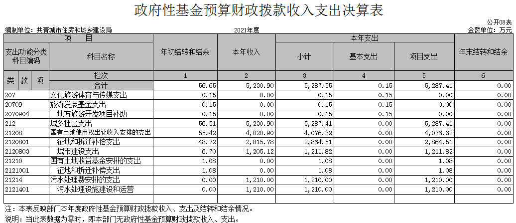 八、政府性基金预算财政拨款收入支出决算表