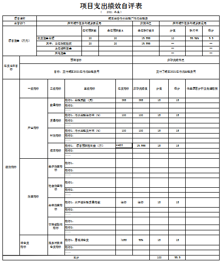城区生活污水处理厂污泥处理费项目绩效自评总体综述:根据年初设定的绩效目标,城区生活污水处理厂污泥处理费项目绩效自评得分为99.9 分。项目全年预算数为20万元,执行数为19.99万元,完成预算的 99.98 %。项目绩效目标完成情况:一是完成2021年污泥的处理;二是控制在预算范围内。发现的问题及原因:本次绩效评价指标体系在吸收、借鉴以前年度工作成果的基础上进行了一些改进,但个别绩效指标仍需要深入研究,进一步细化、量化。下一步改进措施:加大绩效评价工作推进力度。将绩效评价纳入中心的常态化工作来抓,早安排、早落实。加强绩效评价人员的培训,强化绩效评价人员业务知识,提高绩效评价工作质量。