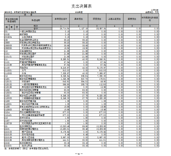 本部门2022年度支出总计26714.54万元,其中本年支出合计26714.54万元,较2021年增加1642.26万元,增长6.5%,主要原因是:2022年项目支出及时;年末结转和结余0万元,较2021年无增减,主要原因是:2022年项目支出增加,且年末无结转和结余。