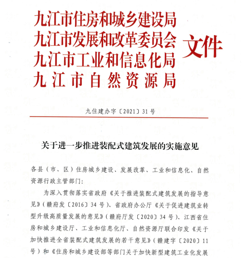 为进一步培育装配式建筑市场,提高装配式建筑比例,促进建筑业与工业化、智能化、信息化深度融合,市住建局、市发改委、市工信局、市自然资源局联合印发《关于进一步推进装配式建筑发展的实施意见》。