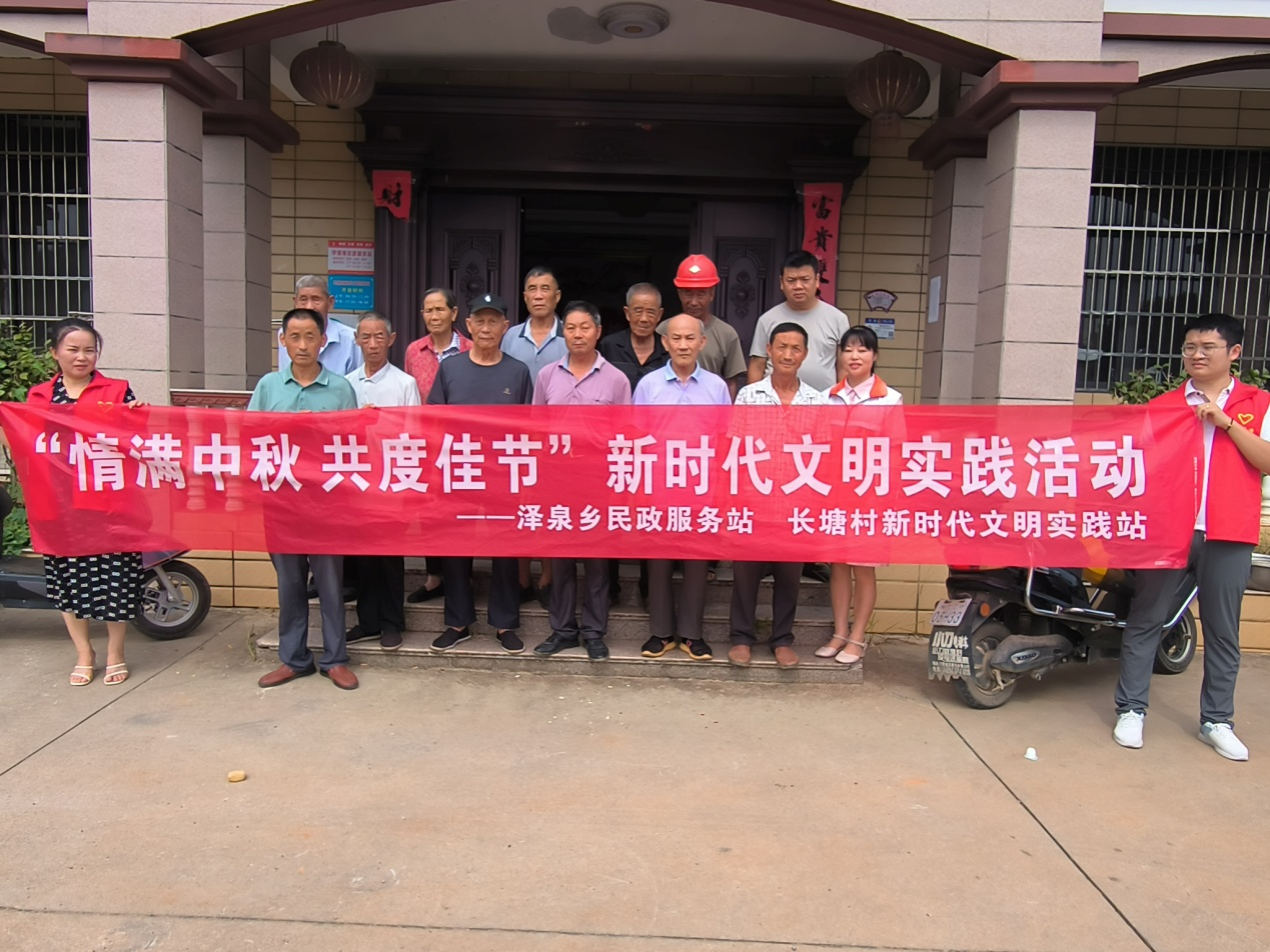 时到秋兮秋意浓,团圆万丰庆佳节,为充分发挥新时代文明实践活动站的阵地作用,弘扬中华民族敬老、爱老、助老的传统美德,以实际行动体现对辖区老人的亲切关怀。9月14日,长塘村新时代文明实践站联合泽泉乡民政所,邀请村里的老人,共同开展 “情暖中秋,共度佳节”新时代文明实践活动。