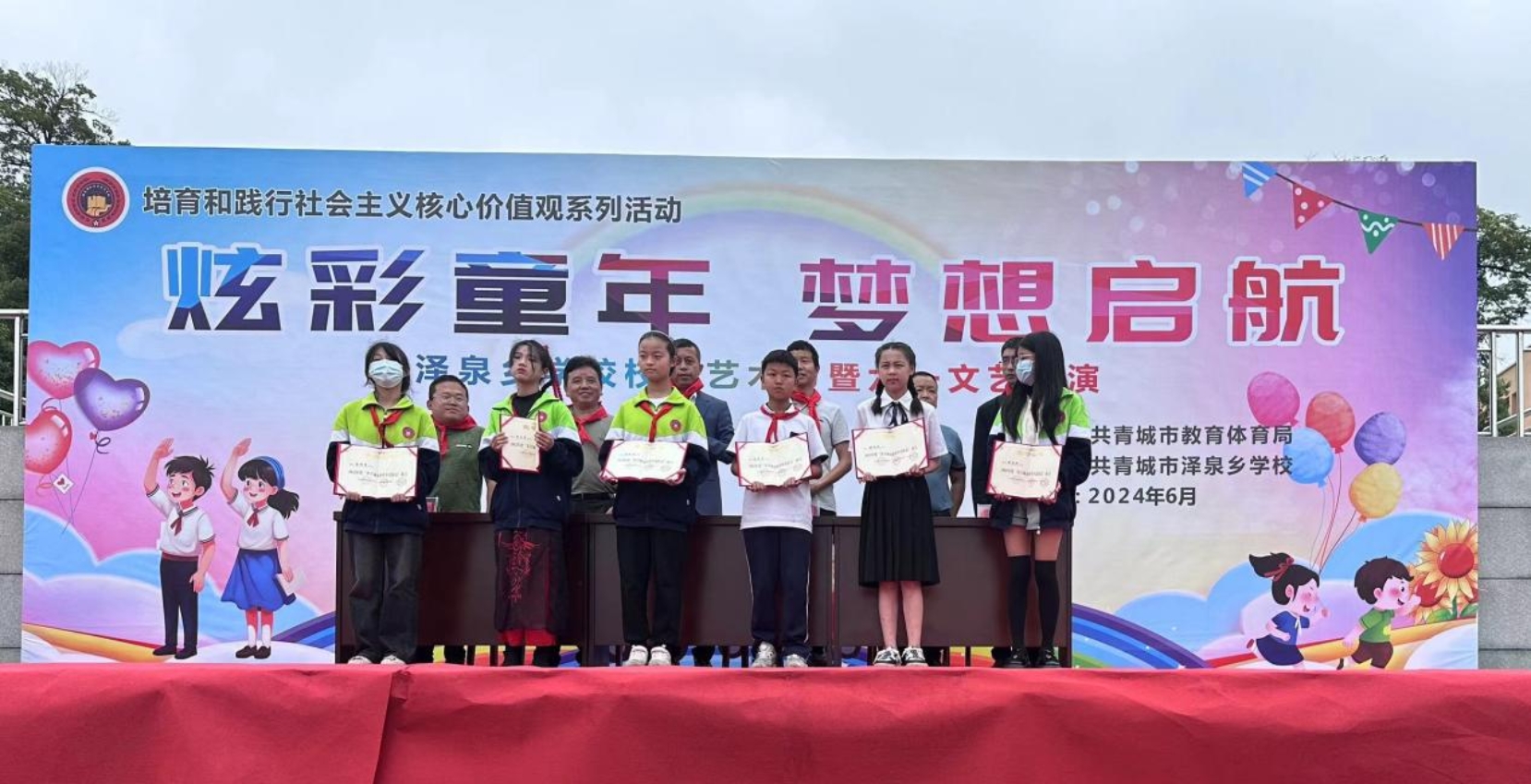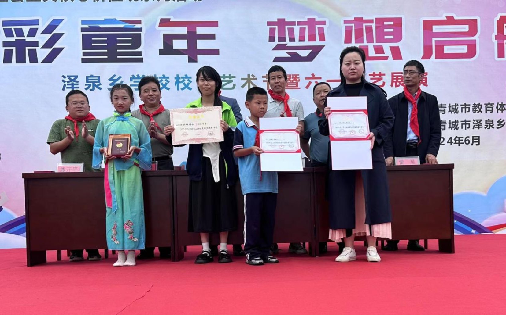 炫彩童年,梦想启航。为深入学习贯彻习近平总书记“用心用情促进儿童健康成长、全面发展”的工作要求,进一步丰富学生的校园文化生活,营造积极向上、清新高雅、健康文明的校园文化氛围,展现孩子们的精神风貌和艺术风采,2024年5月31日上午,伴随着欢快的笑声、热烈的掌声泽泉乡学校2024年庆“六一”表彰大会暨文艺汇演拉开帷幕。