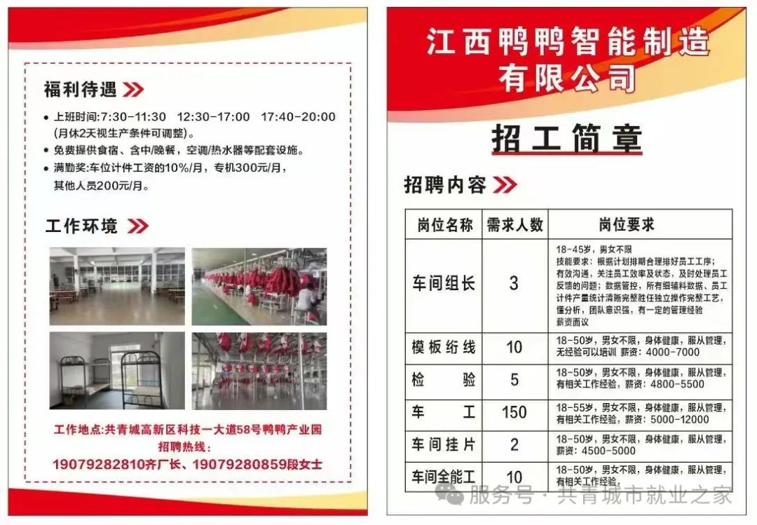 江西梅湖食品科技有限公司因订单增加,现需诚聘以下岗位工作人员: