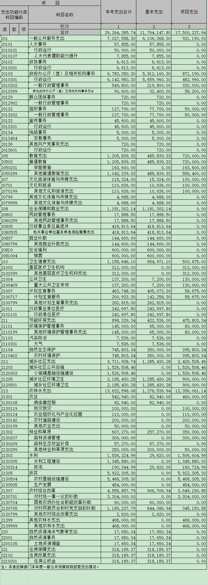 三、支出决算表