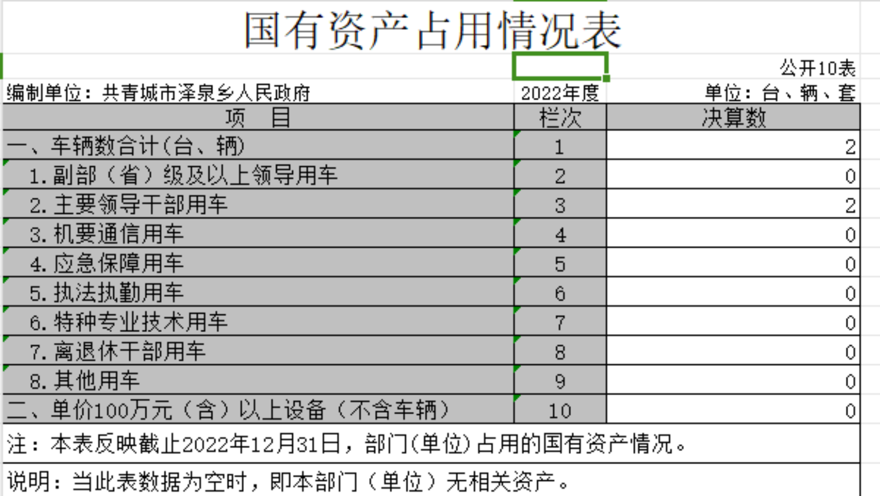 截止2022年12月31日,本部门国有资产占用情况见公开10表《国有资产占用情况表》。其中车辆中的主要领导干部用车为公务用车,无其他用车。