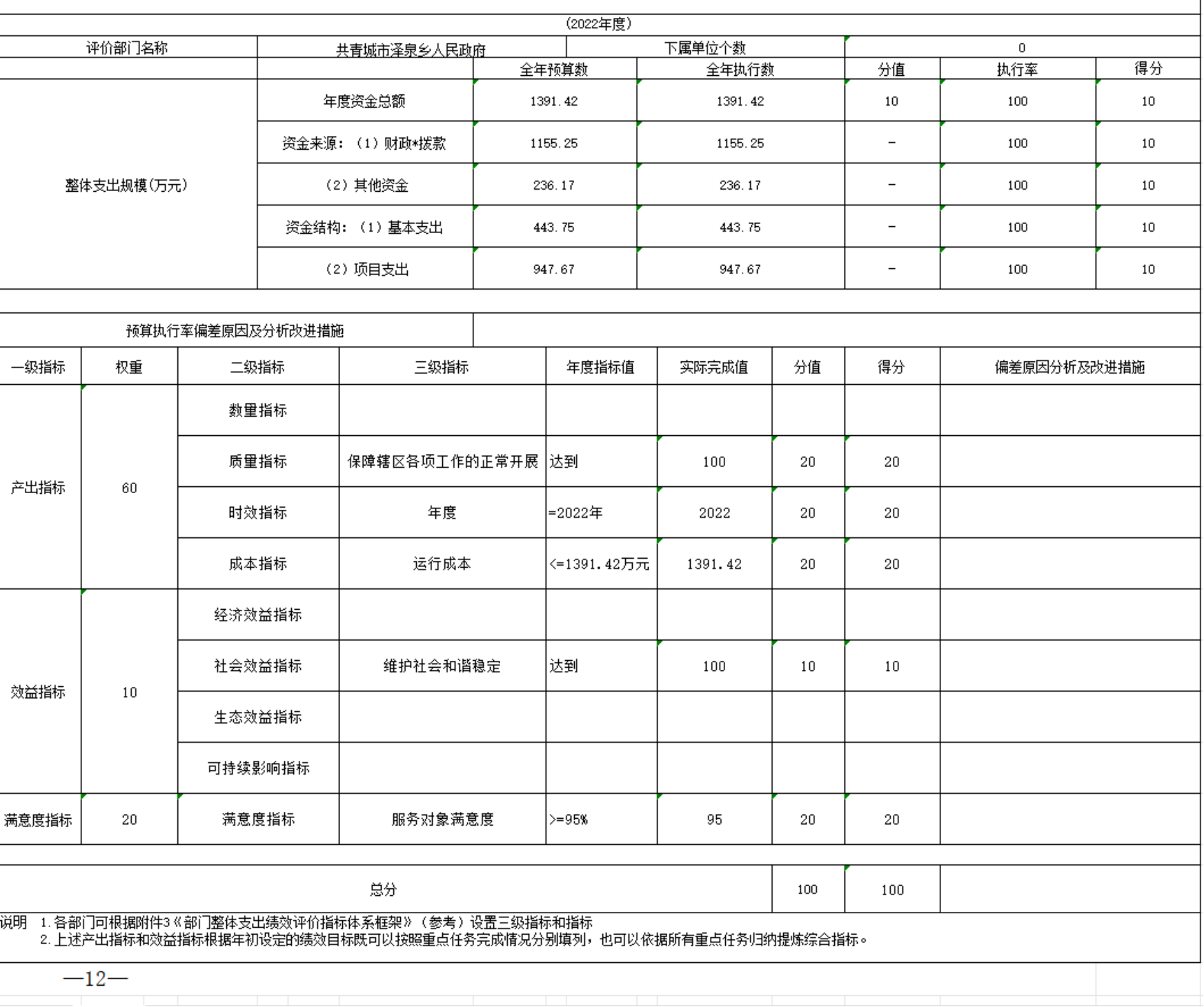 (11)成本指标。部门基本支出、项目支出预算控制率都为100%。三、绩效评价工作过程