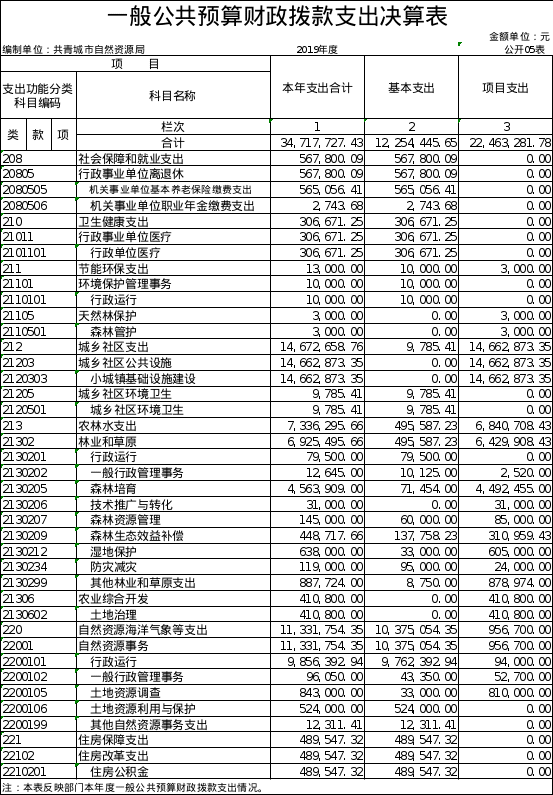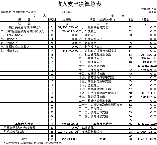 第二部分 2019年度部门决算表