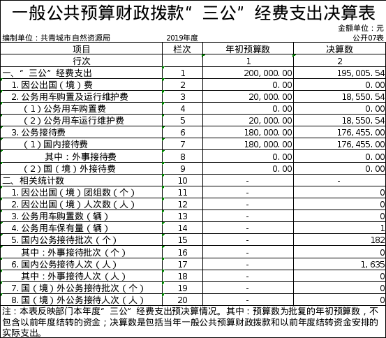 本部门2019年度一般公共预算财政拨款“三公”经费支出年初预算数为20万元,决算数为19.5万元,完成年初预算的97.5%,决算数较2018年增加15.01万元,增长333.94%,其中: