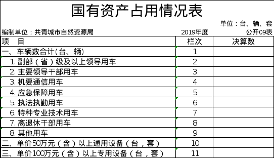 九、国有资产占用情况表