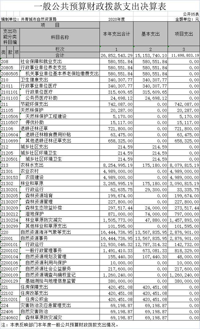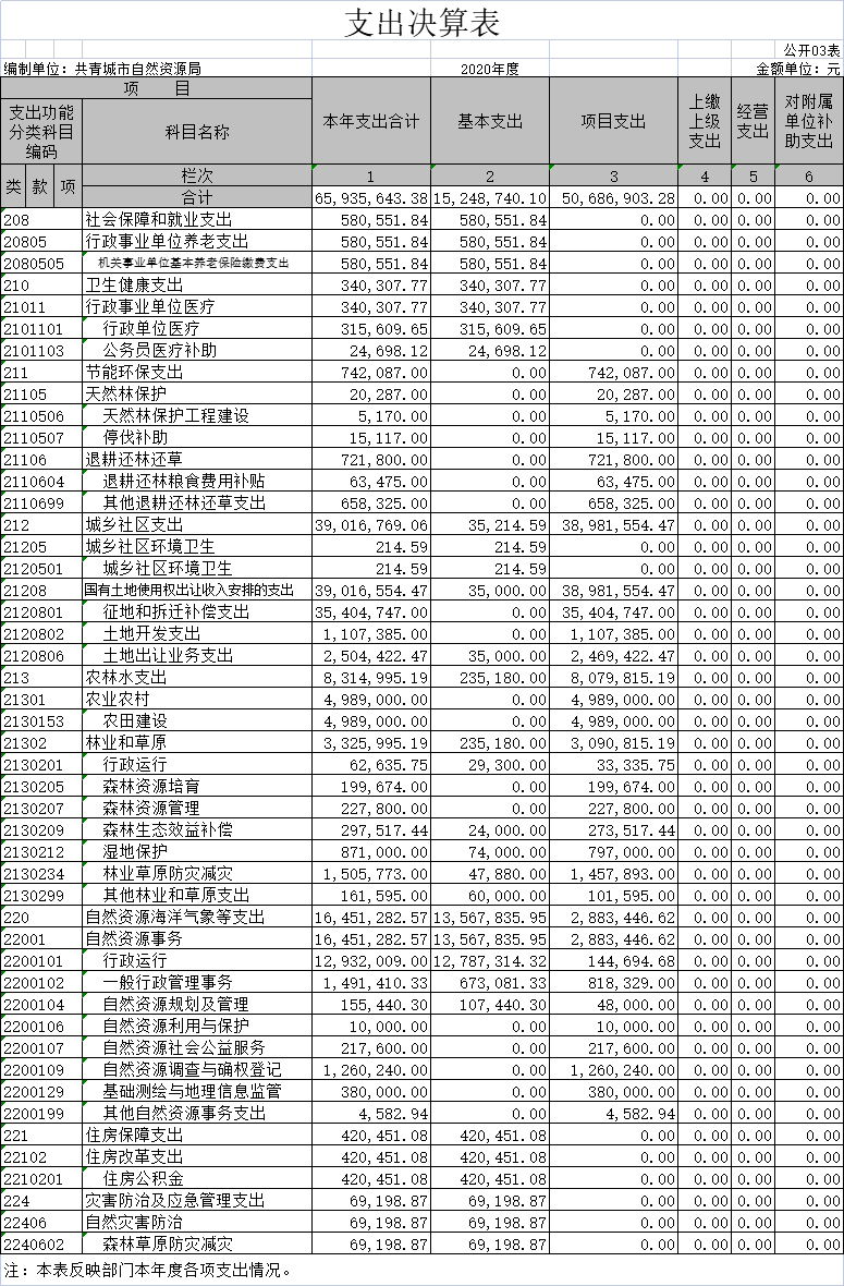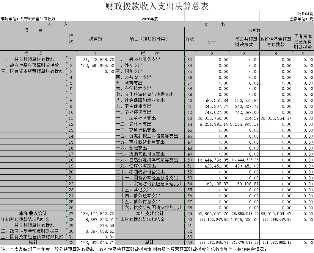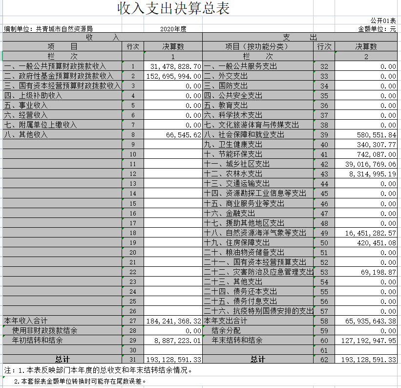 2020年度部门决算公开格式: